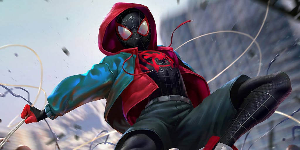 The story is about Miles Morales, a fan of Spider-Man. One day he gets bitten by a radioactive spider, giving him super powers. Suddenly Spider-Man gets killed, so Miles makes himself a spider-suit to be the new Spider-Man. Along the way he encounters other versions of Spider-Man who were transported from their own universes to Miles's. Now it's up to the Spider-Men and Women to save New York City from a disastrous fate, planned by the evil crime boss named "Kingpin", and return the other Spider-Men and Women back to their own dimensions before it's too late.